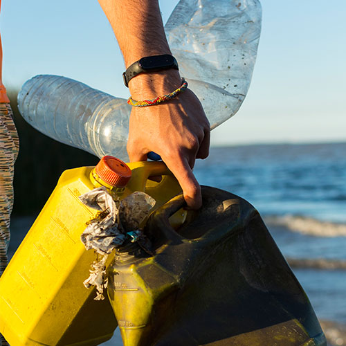 10 minutos de recolección de residuos de la costa del río durante el final de la clase. Los mismos luego serán reciclados.